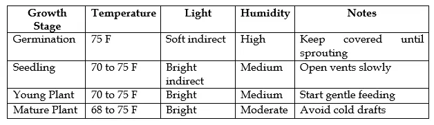 Table: Ideal Conditions for Each Growth Stage
