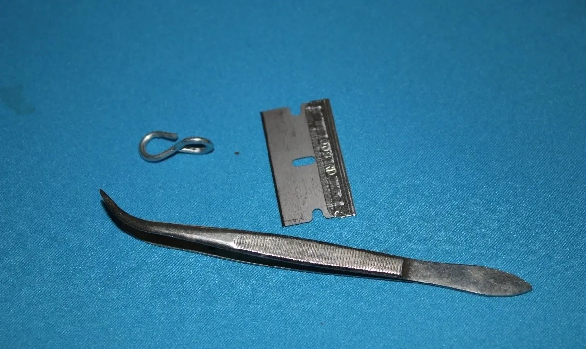 This Photo no 2 shows the tools we use for pollination: tweezers, a razor blade, and a small holding ring.