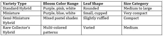 I offer everything from miniature violets with tiny blooms to showy, ruffled hybrids in bold colors. Many of these varieties are not available in big-box garden centers. Customers often tell me they enjoy the surprise of seeing what blooms from a packet, especially when growing rare hybrids that can produce unique combinations of colors and leaf patterns.
